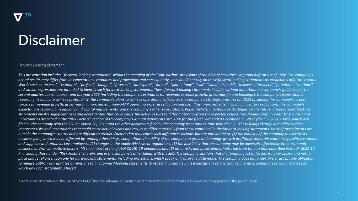 2 Disclaimer Forward Looking Statement This presentation includes “forward-looking statements” within the meaning of the “safe harbor” provisions of the Private Securities Litigation Reform Act of 1996. The company’s actual results may differ from its expectations, estimates and projections and consequently, you should not rely on these forward-looking statements as predictions of future events. Words such as “expect”, “estimate”, “project”, “budget”, “forecast”, “anticipate”, “intend”, “plan”, “may”, “will”, “could”, “should”, “believes”, “predicts”, “potential”, “continue”, and similar expressions are intended to identify such forward-looking statements. These forward-looking statements include, without limitation, the company’s guidance for the second quarter, fourth quarter and full year 2023 (including the company’s estimates for revenue, revenue growth, gross margin and bookings), the company’s expectations regarding its ability to achieve profitability, the company’s plans to achieve operational efficiency, the company’s strategic priorities for 2023 (including the company’s ns and targets for revenue growth, gross margin improvement, non-GAAP operating expense reduction and cash flow improvements (including inventory reduction)), the company’s expectations regarding its liquidity and capital requirements, and the company’s other expectations, hopes, beliefs, intentions or strategies for the future. These forward-looking statements involve significant risks and uncertainties that could cause the actual results to differ materially from the expected results. You should carefully consider the risks and uncertainties described in the “Risk Factors” section of the company’s Annual Report on Form 10-K for the fiscal year ended December 31, 2022 (the “FY 2022 10-K”), which was filed by the company with the SEC on March 20, 2023 and the other documents filed by the company from time to time with the SEC. These filings identify and address other important risks and uncertainties that could cause actual events and results to differ materially from those contained in the forward-looking statements. Most of these factors are outside the company’s control and are difficult to predict. Factors that may cause such differences include, but are not limited to: (1) the inability of the company to execute its business plan, which may be affected by, among other things, competition, the ability of the company to grow and manage growth profitably, maintain relationships with customers and suppliers and retain its key employees; (2) changes in the applicable laws or regulations; (3) the possibility that the company may be adversely affected by other economic, business, and/or competitive factors; (4) the impact of the global COVID-19 pandemic; and (5) other risks and uncertainties indicated from time to time described in the FY 2022 10- K, including those under “Risk Factors” therein, and in the company’s other filings with the SEC. The company cautions that the foregoing list of factors is not exclusive and not to place undue reliance upon any forward-looking statements, including projections, which speak only as of the date made. The company does not undertake or accept any obligation to release publicly any updates or revisions to any forward-looking statements to reflect any change in its expectations or any change in events, conditions or circumstances on which any such statement is based. * Additional information on the use of Non-GAAP financial information, industry and market data and trademarks is included in the appendix of this presentation
