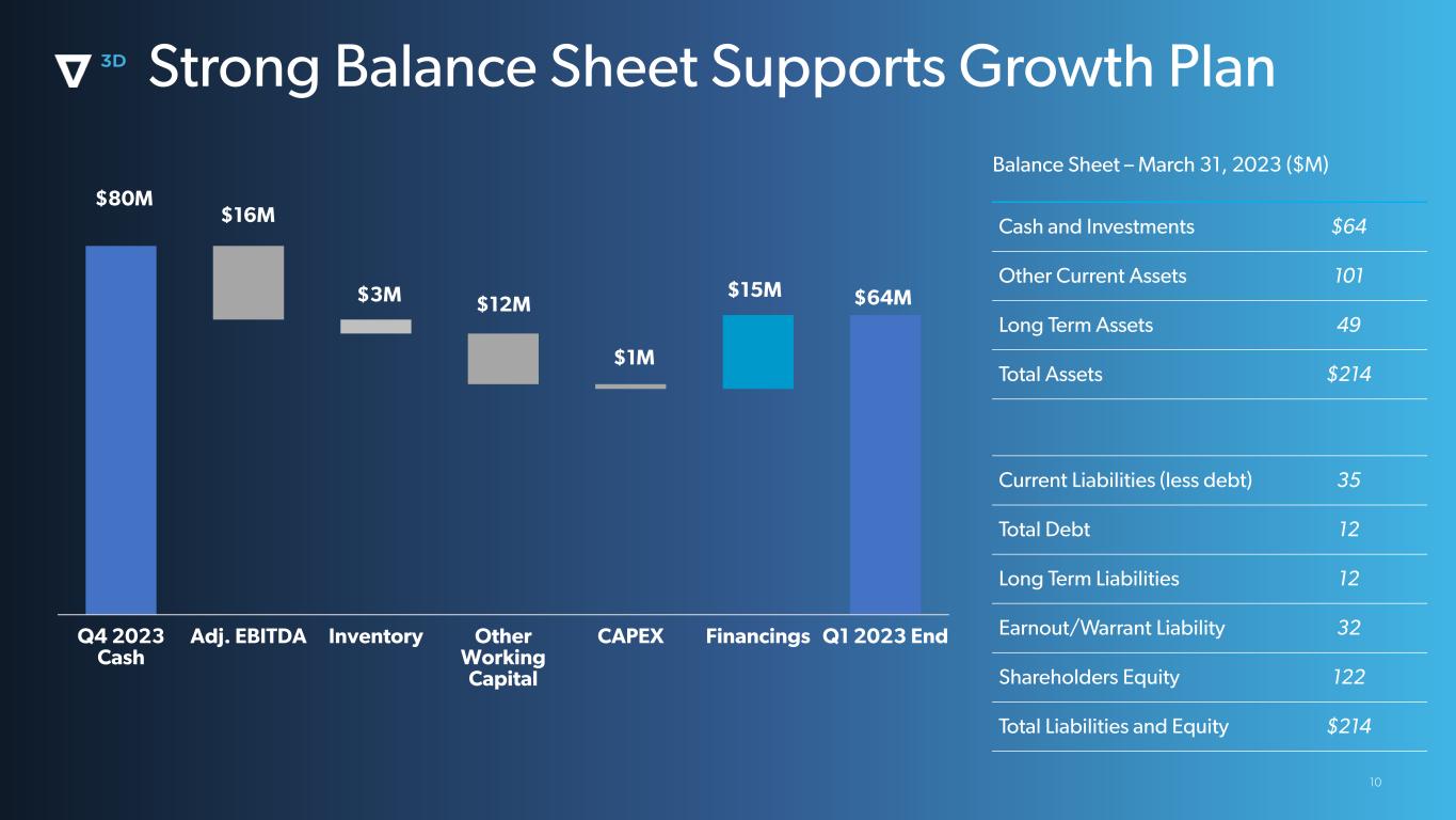 9 Q123 drivers Reduction in Bill of Material costs Improved manufacturing efficiency 2023 drivers Bill of Material cost reduction Volume - driving overhead cost absorption/labor efficiencies ASP improvement due to price increases and mix On plan to achieve Q423 target of 30% Gross Margin Expansion
