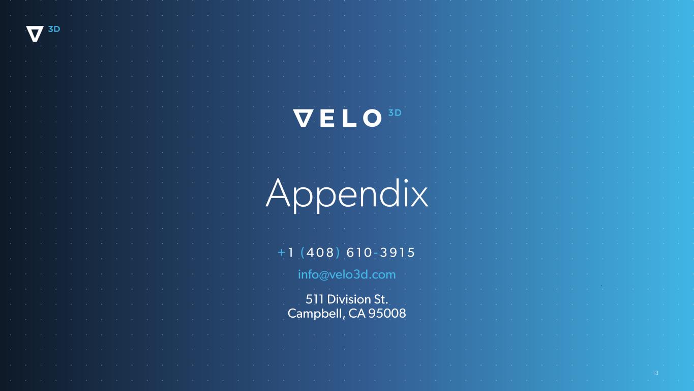 Appendix + 1 ( 4 0 8 ) 6 1 0 - 3 9 1 5 info@velo3d.com 511 Division St. Campbell, CA 95008 13
