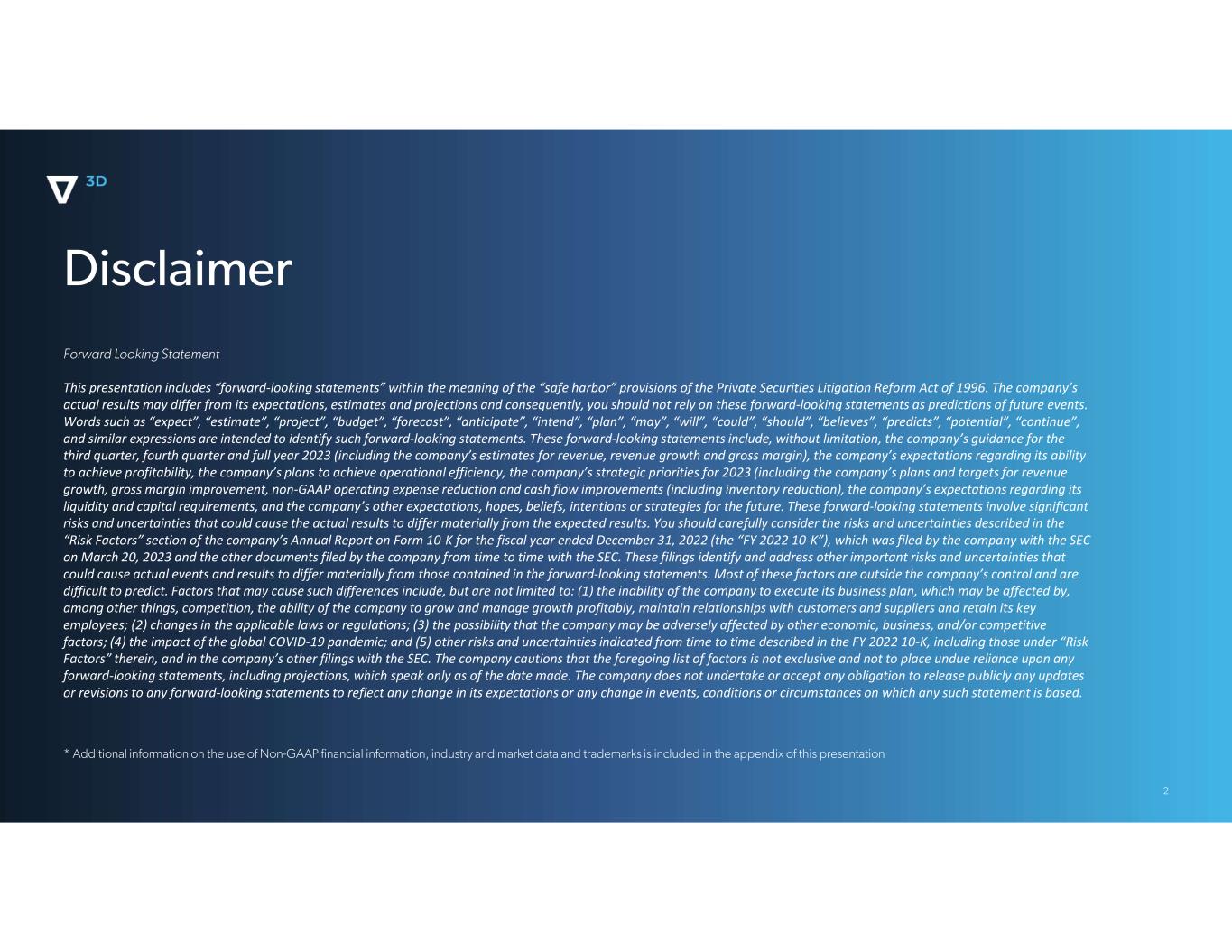 This presentation includes “forward-looking statements” within the meaning of the “safe harbor” provisions of the Private Securities Litigation Reform Act of 1996. The company’s actual results may differ from its expectations, estimates and projections and consequently, you should not rely on these forward-looking statements as predictions of future events. Words such as “expect”, “estimate”, “project”, “budget”, “forecast”, “anticipate”, “intend”, “plan”, “may”, “will”, “could”, “should”, “believes”, “predicts”, “potential”, “continue”, and similar expressions are intended to identify such forward-looking statements. These forward-looking statements include, without limitation, the company’s guidance for the third quarter, fourth quarter and full year 2023 (including the company’s estimates for revenue, revenue growth and gross margin), the company’s expectations regarding its ability to achieve profitability, the company’s plans to achieve operational efficiency, the company’s strategic priorities for 2023 (including the company’s plans and targets for revenue growth, gross margin improvement, non-GAAP operating expense reduction and cash flow improvements (including inventory reduction), the company’s expectations regarding its liquidity and capital requirements, and the company’s other expectations, hopes, beliefs, intentions or strategies for the future. These forward-looking statements involve significant risks and uncertainties that could cause the actual results to differ materially from the expected results. You should carefully consider the risks and uncertainties described in the “Risk Factors” section of the company’s Annual Report on Form 10-K for the fiscal year ended December 31, 2022 (the “FY 2022 10-K”), which was filed by the company with the SEC on March 20, 2023 and the other documents filed by the company from time to time with the SEC. These filings identify and address other important risks and uncertainties that could cause actual events and results to differ materially from those contained in the forward-looking statements. Most of these factors are outside the company’s control and are difficult to predict. Factors that may cause such differences include, but are not limited to: (1) the inability of the company to execute its business plan, which may be affected by, among other things, competition, the ability of the company to grow and manage growth profitably, maintain relationships with customers and suppliers and retain its key employees; (2) changes in the applicable laws or regulations; (3) the possibility that the company may be adversely affected by other economic, business, and/or competitive factors; (4) the impact of the global COVID-19 pandemic; and (5) other risks and uncertainties indicated from time to time described in the FY 2022 10-K, including those under “Risk Factors” therein, and in the company’s other filings with the SEC. The company cautions that the foregoing list of factors is not exclusive and not to place undue reliance upon any forward-looking statements, including projections, which speak only as of the date made. The company does not undertake or accept any obligation to release publicly any updates or revisions to any forward-looking statements to reflect any change in its expectations or any change in events, conditions or circumstances on which any such statement is based.